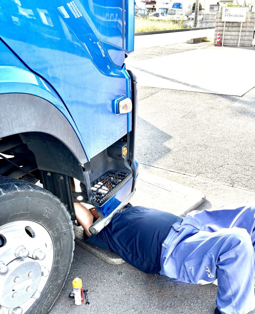本日、出発前の点検・整備をしていたドライバーさんの姿です!